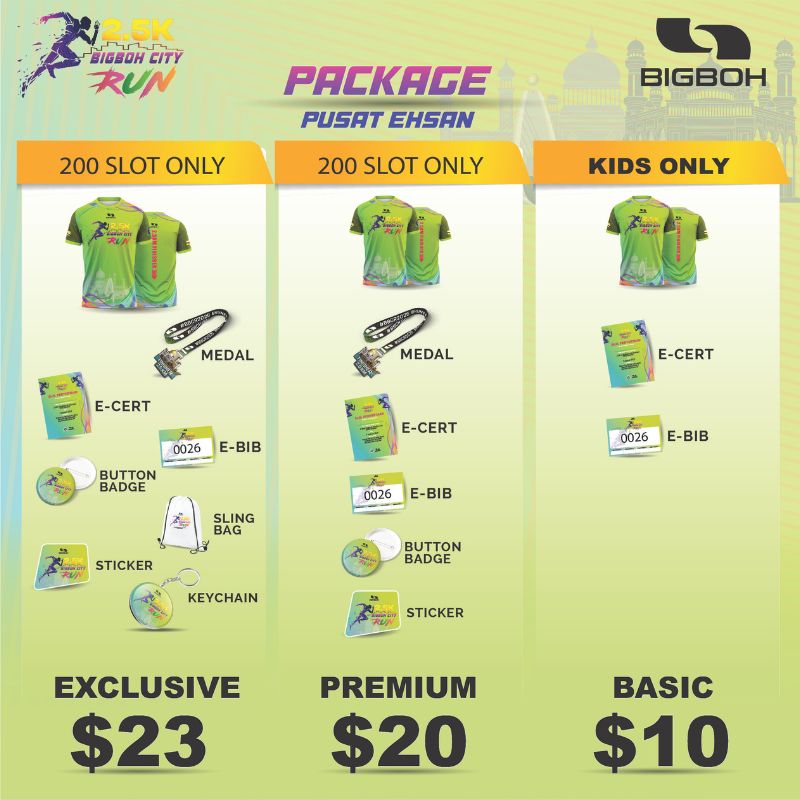 Exclusive ($35) – T-shirt, medal, e-cert, e-bib, sticker, button badge, keychain, sling bag
